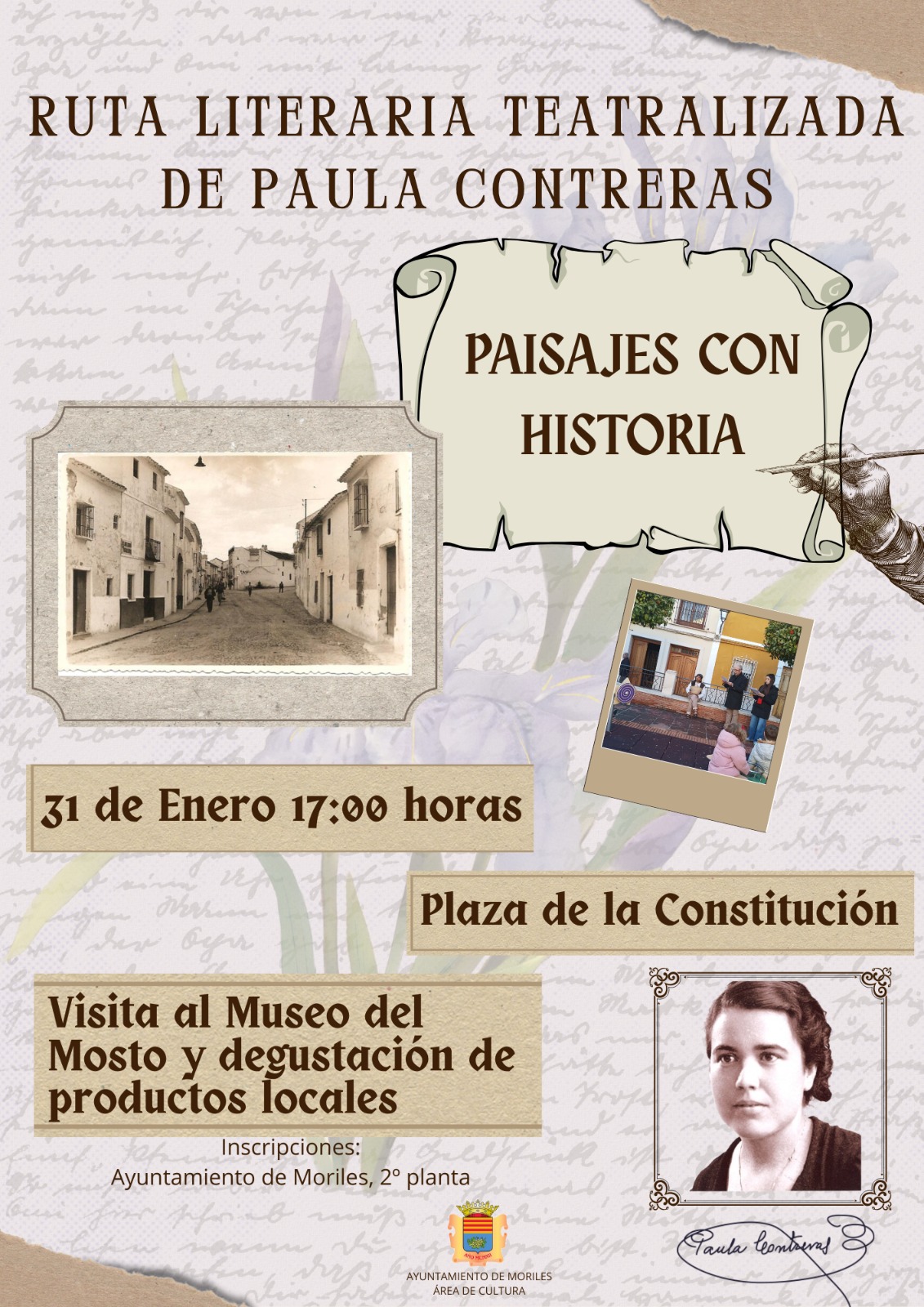 El Ayuntamiento de Moriles organiza esta actividad el 31 de enero como experiencia que combina literatura, teatro y patrimonio. Durante el recorrido, actrices y actores dan vida a personajes relevantes de la obra de Paula y recrean el ambiente de sus historias.